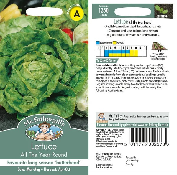 With its slow-to-bolt nature, this variety is ideal for gardeners seeking a dependable crop that delivers high-quality yields over an extended period. Whether you’re planting in spring, summer, or autumn, Lettuce All The Year Round ensures your salads remain fresh and flavourful across multiple seasons.