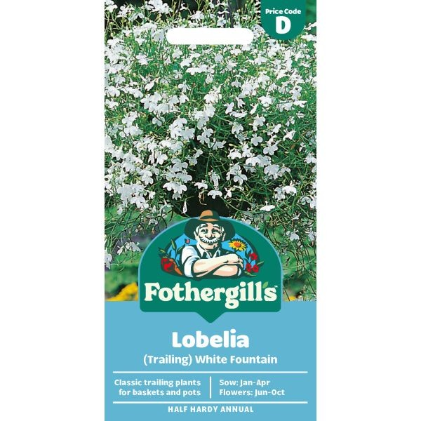 Lobelia White Fountain Seeds produce stunning glistening white blooms that add a soft, elegant touch to any garden. Known for their cascading habit, these plants create a fountain-like effect with delicate, trailing stems covered in pure, snowy white flowers. They are perfect for accenting other colours or softening a vibrant colour palette, making them an excellent choice for mixed borders, hanging baskets, and containers.