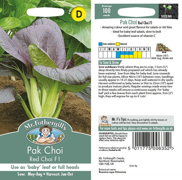 Whether you’re an experienced gardener or just starting out, Pak Choi Red Choi F1 Seeds will provide you with vibrant, flavour-packed greens all season long. Add them to your vegetable patch for a nutritious, visually appealing crop that is perfect for healthy salads, stir-fries, and a variety of other dishes.