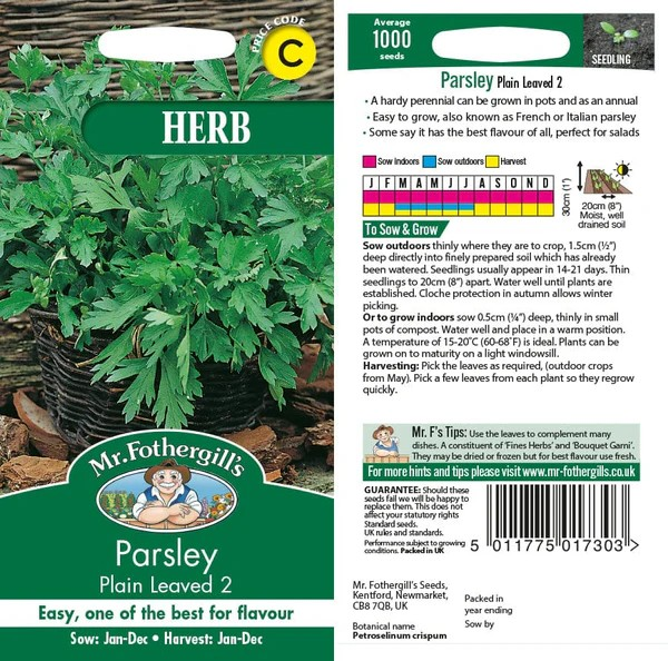Also known as French or Italian Parsley. Has a strong and refined flavour. Considered by some to be the best flavoured of all parsley.