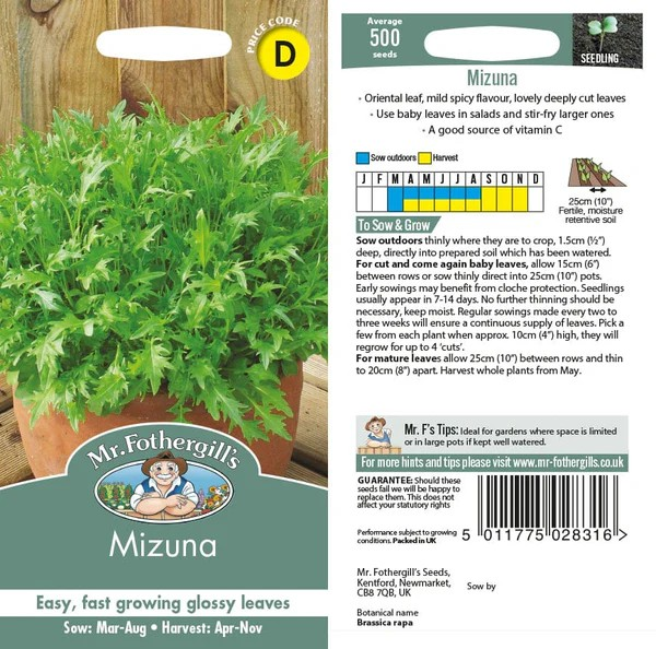 Becoming increasingly popular, it makes a rosette of finely cut leaves and can be harvested over a long season, at any stage, from small seedlings to large plants, a few leaves at a time. The flowering shoots are also edible.